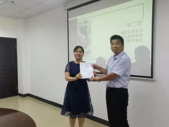 院党委书记黄宏发为各位班级导师颁发聘书。他对啪啪啦