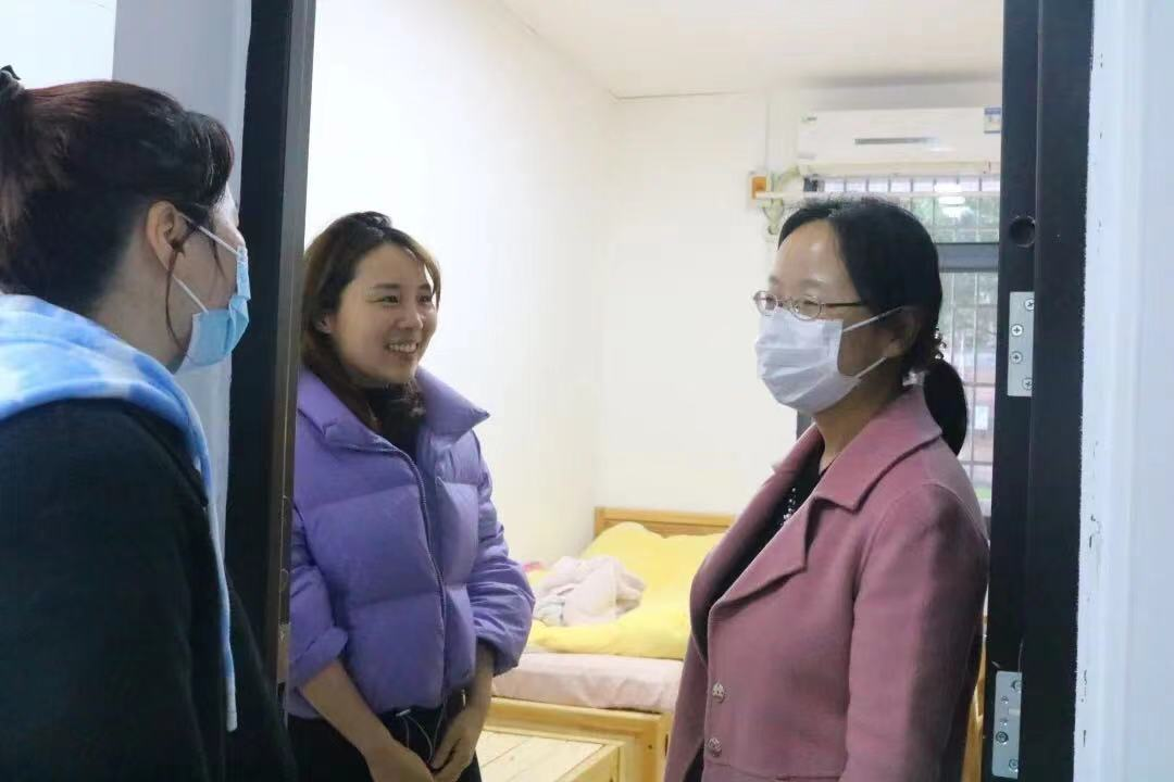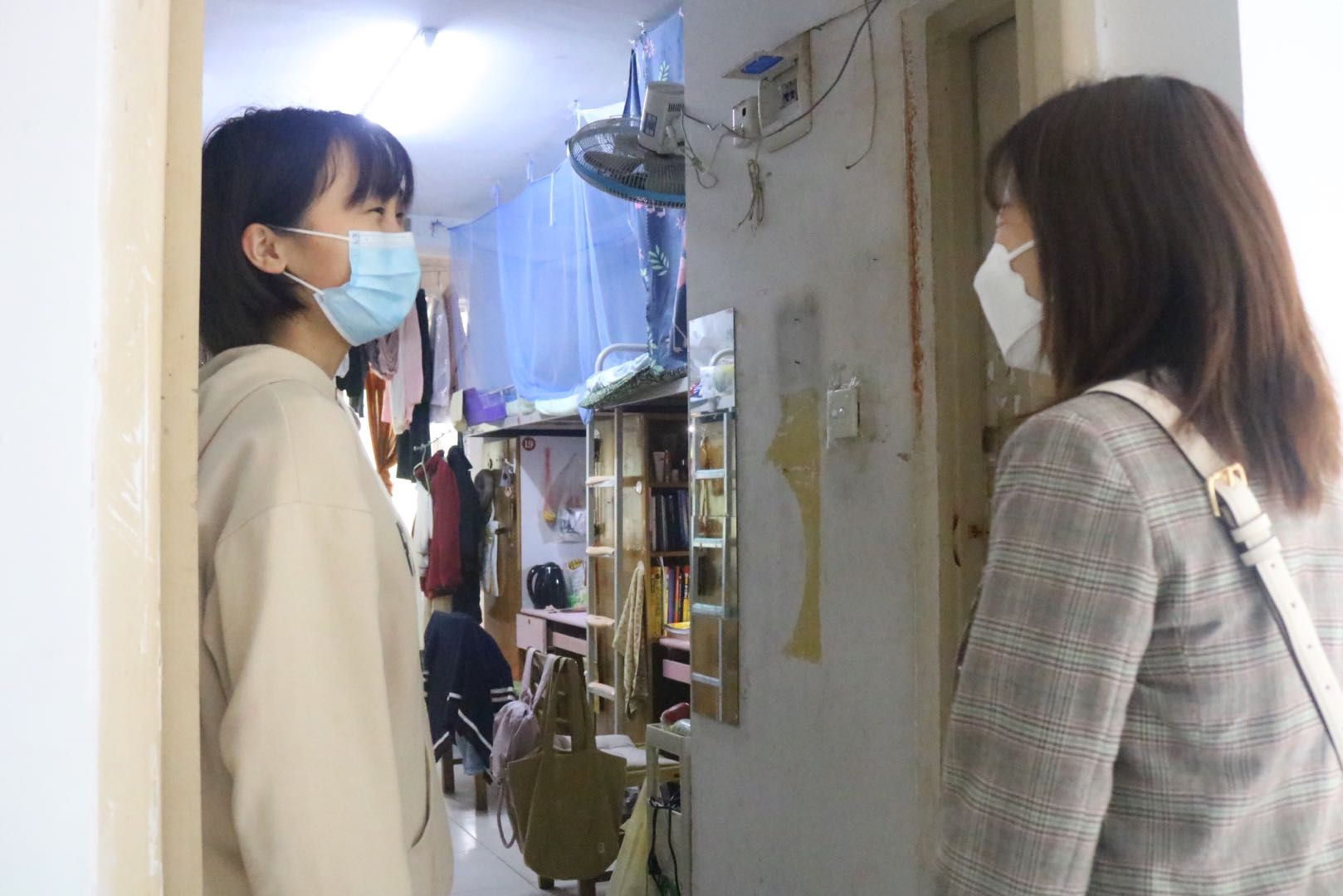 外院博士生宿舍主要分布在校内的枫园和樱园区域。孙燕老师和邓铭一老师除了检查宿舍有无违章电器外,宿舍卫生是否保持良好,宿舍风气是否积极向上,开学以来博士生在学习、生活方面是否遇到困难、在思想、心理方面是否存在困惑等也是老师们所关心的重点。