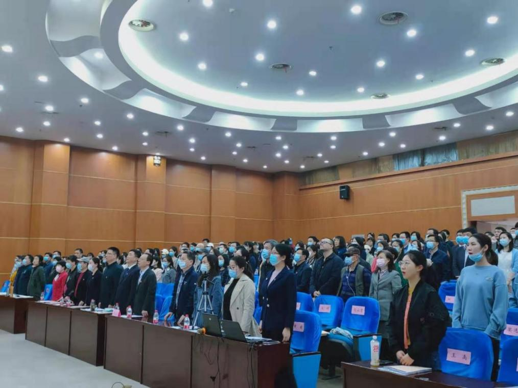 主持人党委副书记孙燕宣布大会开始后,全体起立奏唱国歌。