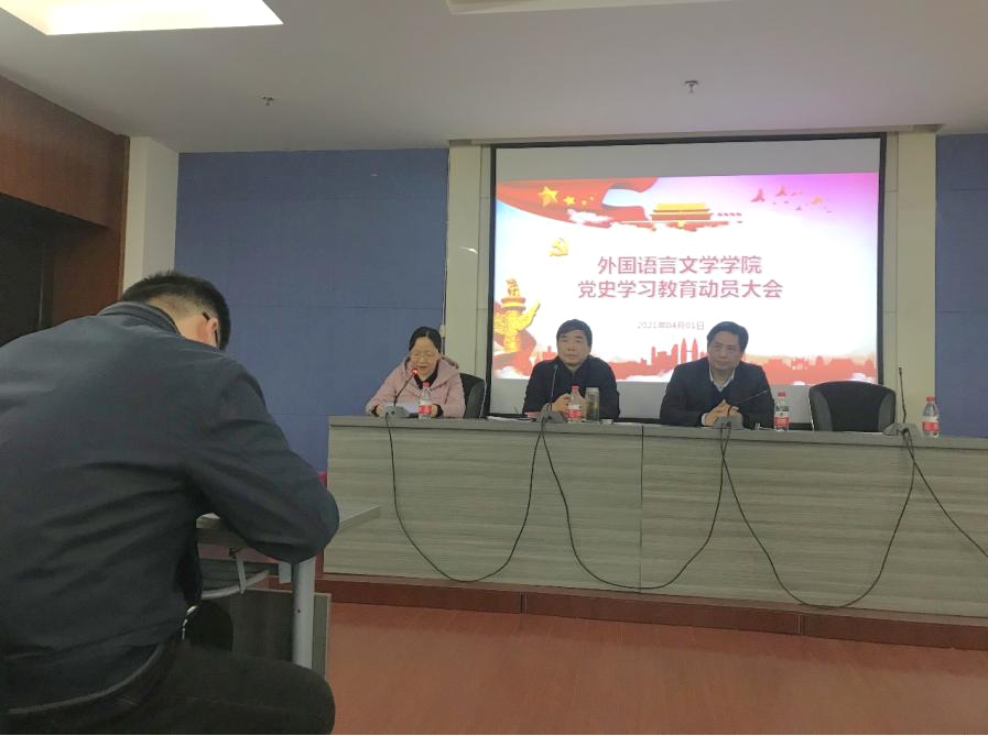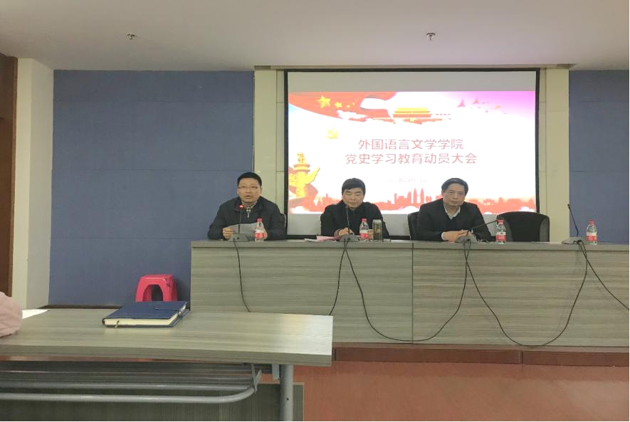 党委副书记刘涛介绍了外语学院党史学习教育实施工作方案。根据教育部党组、湖北省委有关文件精神和学校工作方案,结合学院实际,从六个方面开展党史学习教育,深刻铭记我党百年奋斗光辉历程,深刻认识我党作出的伟大贡献,深刻感悟我党的初心宗旨,系统掌握马克思主义中国化的理论成果,学习传承我党的伟大精神,深刻领会我党推进革命、建设、改革的宝贵经验。会上还对具体工作安排进行了部署。