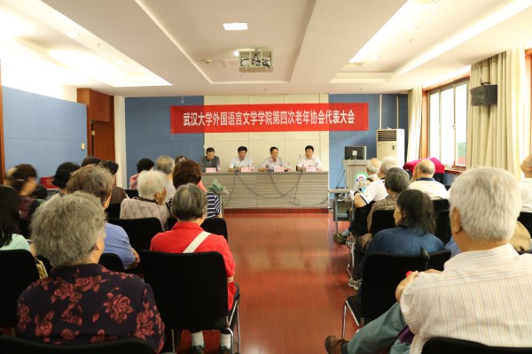 2018年5月30日下午,外语学院第四次老年协会代表大会在学院3005会议室成功召开。学院党委书记黄宏发、院长马萧、现任老协会长戴方喜出席会议,40余名外院离退休的教师职工参会。大会由党委副书记胡浩主持。