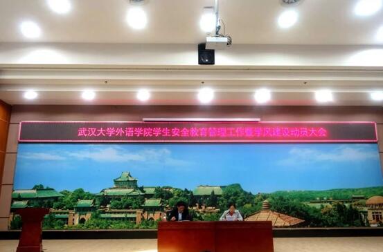外语学院安全教育管理工作暨学风建设动员大会于11月9日下午4点在外院报告厅举行。本次大会由马萧院长主持,党委书记黄宏发、党委副书记胡浩、孙燕和副院长王爱菊分别传达文件精神和进行工作部署,学院全体教职工和部分学生干部参会。