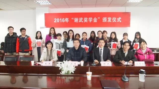 最后,由杜青钢院长、谢武先生、王燕女士、胡浩副书记、孙燕副书记为奖学金获得者颁发证书并合影留念。2016年“谢武奖学金”颁奖仪式顺利落幕。