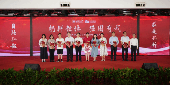 在图书馆报告厅举行2023年教师节庆祝大会,会议以“躬耕教坛,强国有我”为主题,表彰了一批优秀教师。啪啪啦