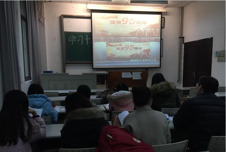 2016年11月24日中午,外语学院2016级小语种研究生党支部在学院03教室开展了以“两学一做之学习十八届六中全会精神”为主题的组织生活会。小语种支部研究生党员参加了学习讨论和交流,会议由支部书记陈杭程主持,学院党委副书记胡浩老师作为普通党员参加了此次组织生活。