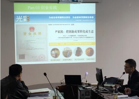 随后,参加答辩的12位同学按事先抽签顺序进行限时6分钟的汇报与展示,并接受现场评委们的提问。1号张良禄超级细菌的检测;2号金星(团队)基于循环经济针对餐桌虾壳回收再利用;4号武大最强CP“一滴雨”团队的CARD人脸识别与大数据分析广告决策投放系统及“星星和光”自闭症儿童全程服务平台;5号尹家波把创新成果转化成生意--负碳环保菱古土-木屑复合材料;6号蔡昌松基于共振磁耦合的高效职能电动汽车无线UL充电桩、有线充电桩项目;9号章广越利用呼唤记忆法创建启鸣研发平台;12号杨光亚“星云引擎”--一个将流媒体、虚拟机与云计算等技术融合而形成的的技术支撑平台等等。选手们的创新创业想法丰富,积极性高,受到了评审们的高度赞扬。