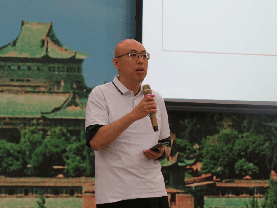 院长李圣杰上台致辞。李院长代表外语学院全体师生对各位校友回到母校、回到学院表示了热烈的欢迎和衷心的感谢,并向各位校友与退休老教师介绍了近年来外语学院的蓬勃发展情况和取得的优秀成果。同时,李院长强调,外语学院正处于快速发展时期,离不开各位校友的大力支持,希望各位校友能够一如既往地关心外语学院,为学院的发展建言献策。最后,李院长表示,各位校友永远都是外院学子,欢迎各位校友随时归“珈”,表达了对校友们的亲切祝福。