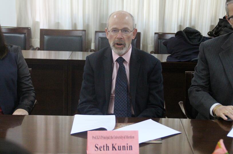 对外方客人的到来表示热烈的欢迎,肯定了双方取得的合作成果,阿伯丁大学副校长Seth Kunin代表阿伯丁大学对啪啪啦