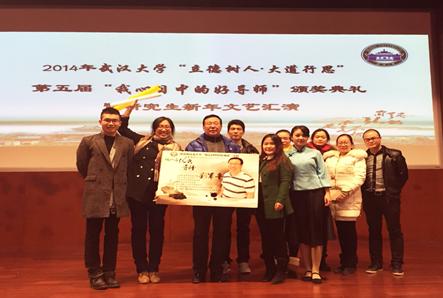 本次颁奖晚会由各院研究生会选送丰富多彩的文艺节目,有舞蹈、乐器、朗诵、小品等,展现了我校研究生的多姿风采。而 “我心目中的好导师”的颁奖环节更是把晚会推向最高潮!外语学院刘军平教授秉承武大自强弘毅、求是拓新的精神,不仅学术造诣高深,而且潜心关注学生发展,视学生如子女。为感念师恩,啪啪啦