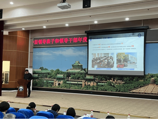 随后,李院长作行政工作述职报告。他从落实立德树人,提升人才培养质量、推进学科建设,力促专业高质量发展、拓宽交流渠道,积极搭建国家合作平台、落实外引内育,师资队伍获得新突破四个方面对行政工作进行了全面阐释。之后李院长指出了学院工作中存在的不足,并明确提出了2024年学院工作的努力方向:一是持续着力学科建设,实现学院内涵式发展;二是精准分析补齐短板,努力解决制约学院发展的瓶颈问题;三是紧扣“人才培养年”主线提升教育教学质量;四是立足师生需求,提升教职工的获得感和幸福感。他表示2024年学院将在学校党委行政领导下,紧紧围绕“人才培养年”主线,以迎接学校第十次党代会的召开为契机,进一步开拓创新、砥砺前行,带领全院师生员工开创学院高质量发展新格局,向新中国成立75周年献礼!