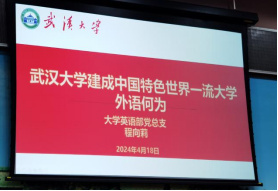 建成中国特色世界一流大学,外语何为”大讨论动员大会。外语学院大学英语部党总支书记程向莉汇报了张平文校长、何莲副校长在外院调研的情况,介绍了学院党委关于开展“啪啪啦