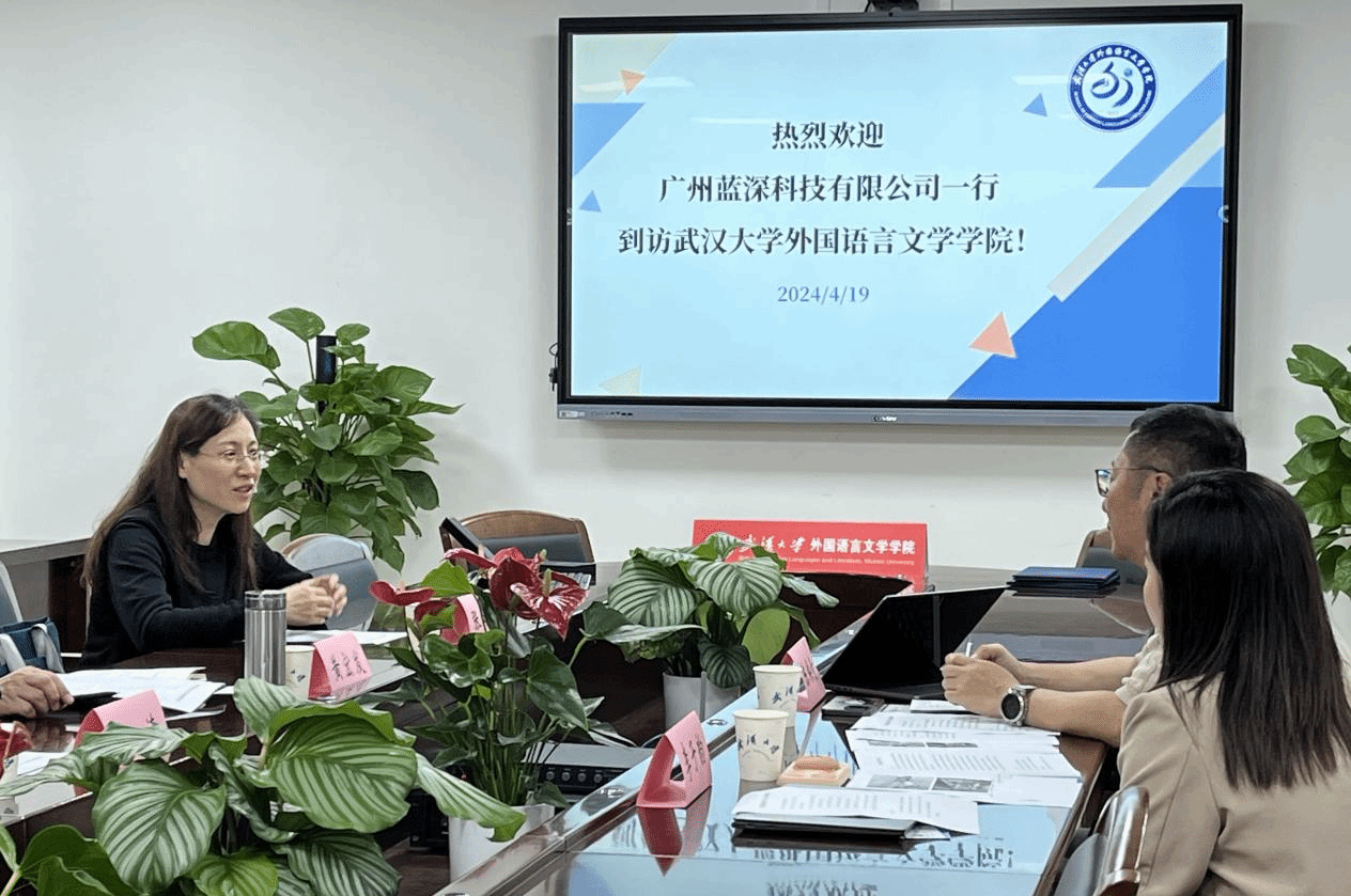 首先,外语学院党委书记黄宏发致欢迎词,并就外语学院发展历程、学科设置、师资力量、就业情况等学院基本情况向广州蓝深科技有限公司一行做系统介绍。他表示,啪啪啦