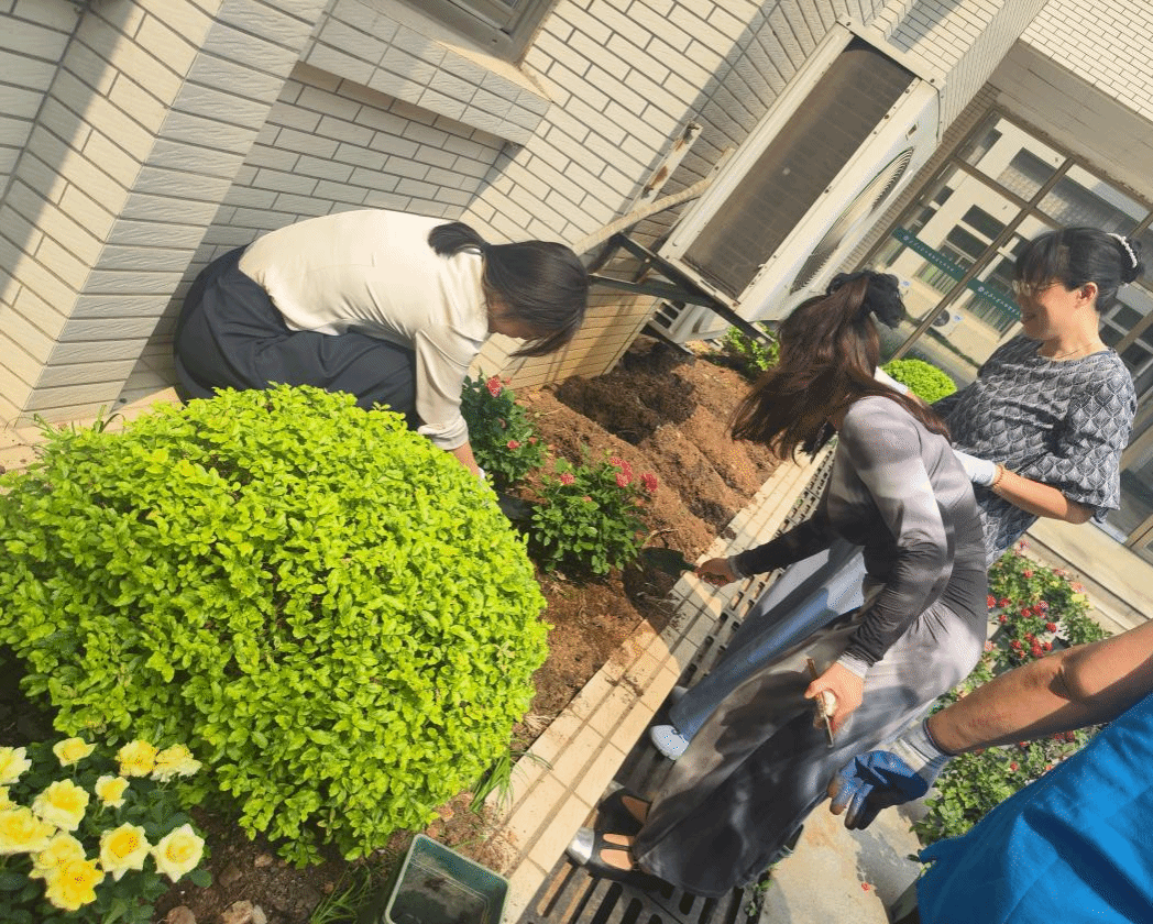 活动结束后,老师们表示虽然满身是汗水,但特别有成就感,看着自己为学院添置的那抹绚烂,感觉幸福无比。这项活动既美化了学院环境,也放松了心情,释放了压力。