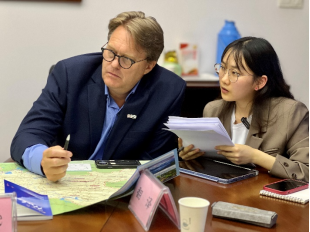 (通讯员:刘梦)5月13日至14日,湖北省文化与旅游厅就《湖北省建设世界知名旅游目的地规划》开展相关调研会,国际著名专家Peter Semone与Yereth作为特邀专家与会,共谋发展前景,致力于在全世界范围内打响知音湖北旅游形象。翻译系研究生陈纪凤与刘梦同学顺利完成会议的口译任务与外宾接待工作,为传播湖北旅游文化贡献了武大外院人的力量。