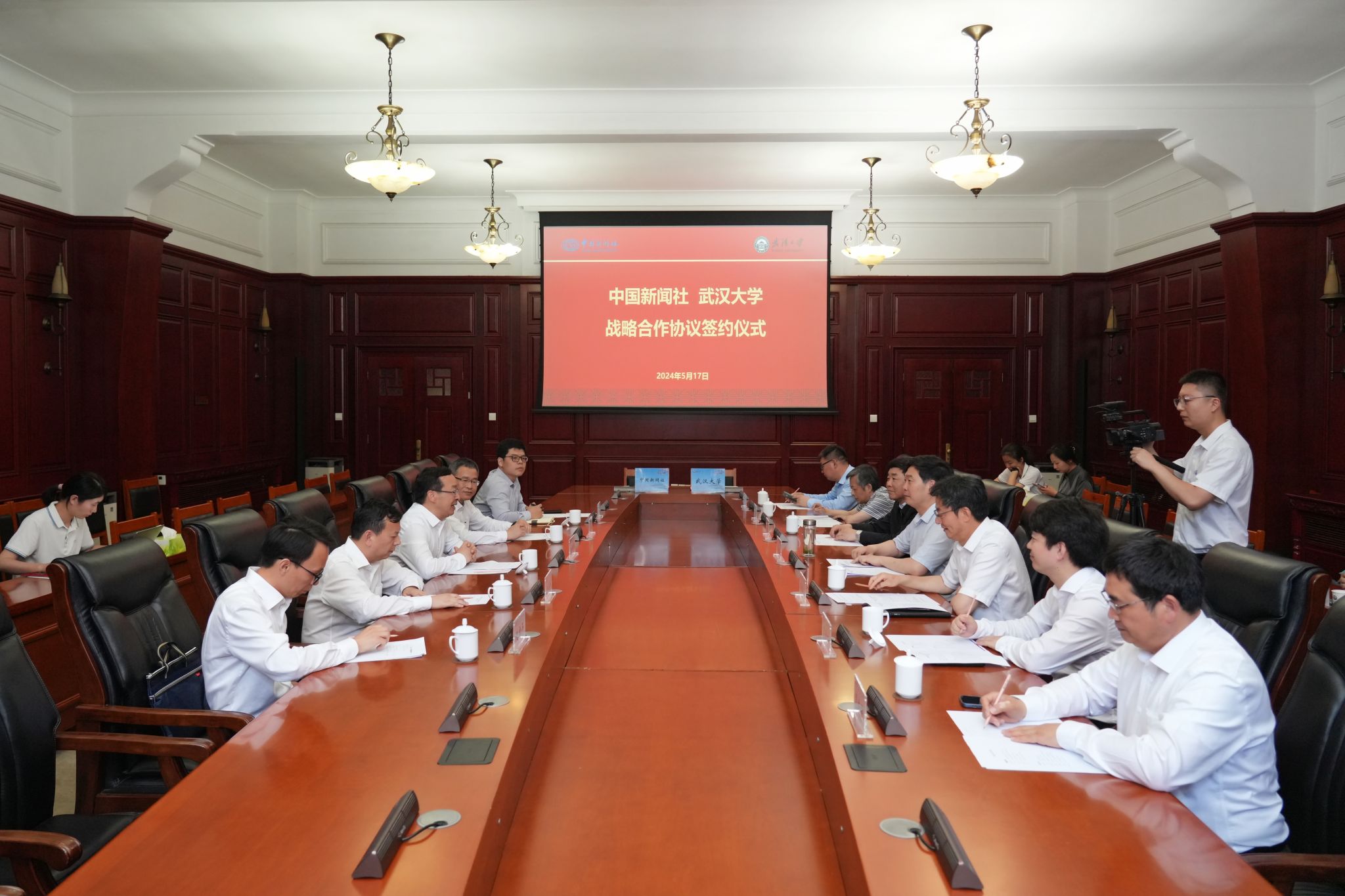 建设与发展表示衷心感谢。他指出,着力加强国际传播能力建设、促进文明交流互鉴是新时代中国特色社会主义文化建设的重要内容,也是习近平总书记对宣传思想文化工作重要指示中所提到的“七个着力”之一。它对于提高国家文化软实力,增强国际话语权,营造一个良好的外部舆论环境,推动构建人类命运共同体,都有着极为重要的意义。此次希望通过与中国新闻社的携手合作,共同探索加强国际传播能力建设、促进文明交流互鉴的新思路、新方法,加快构建中国话语和中国叙事体系、为新时代我国构建高质量国际传播新格局作出更大贡献,以实际行动回答好中国式现代化建设的“武大之问”。