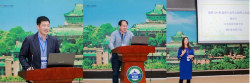 张申威博士作题为“数智化时代德语专业学生的跨文化能力培养”的专题报告;山东大学包汉毅教授、对外经济贸易大学潘亚玲教授分别作题为“人工智能背景下的德语专业学术化转型”以及“数智化时代德语专业学生的跨文化能力培养”的专题报告。