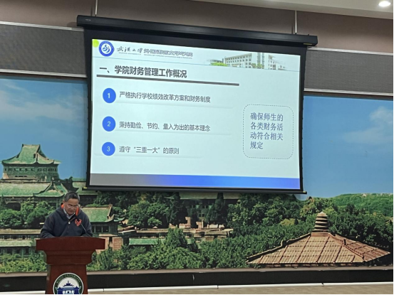 副院长杨牧文作学院财务工作报告,介绍了啪啪啦