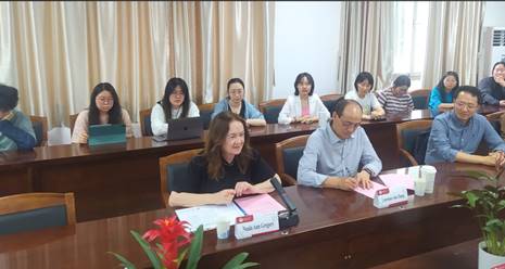 外院党委书记黄宏发、张妍岩副院长、罗菁副院长、英文系主任张国庆教授及英文系师生代表展开深入交流,共商两校学术合作发展大计。