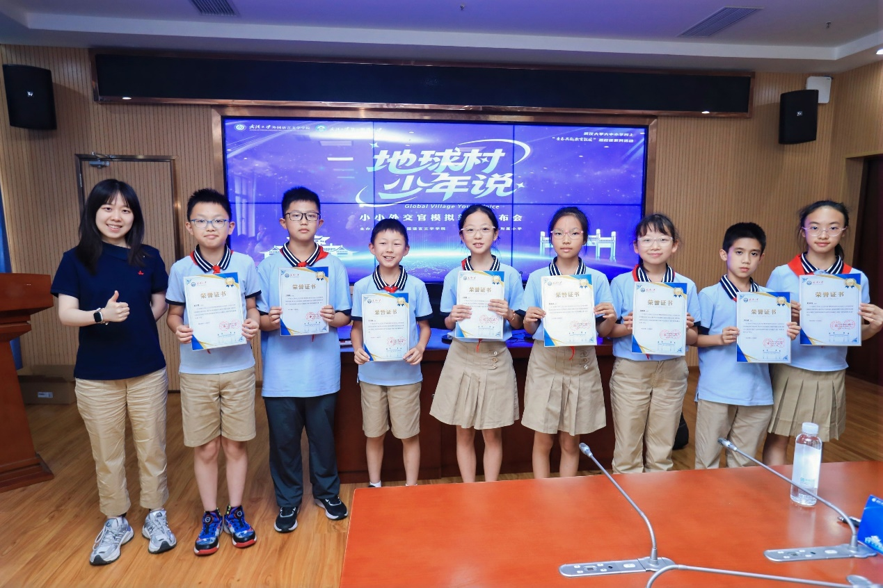经过激烈角逐,活动最终评选出优秀个人奖项。王骏霖、程语夕等同学荣获“优秀新闻发言人”称号;赵蕴琳、兰国睿等同学获评“优秀记者”;李梓鎏、黄晓烨等同学则荣获“优秀译员”称号。颁奖环节结束后,志愿者们为所有参与活动的小同学们发放了定制纪念品小熊,现场洋溢着喜悦与成就。