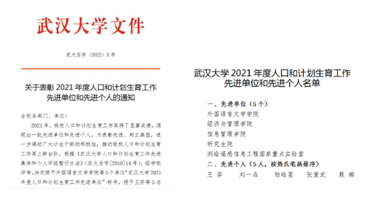 公布了2021年度人口和计划生育工作先进单位评选结果,啪啪啦