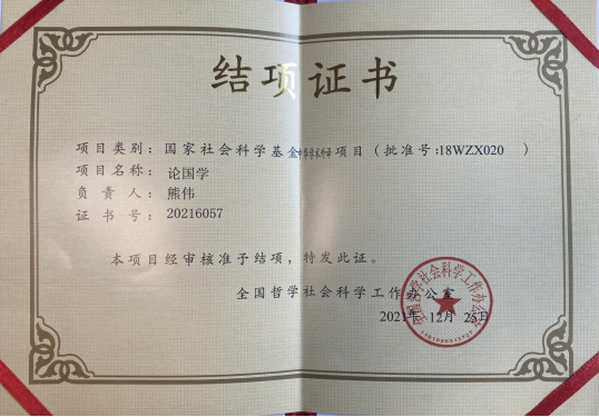 翻译系熊伟教授主持的国家社会科学基金中华学术外译项目《论国学》通过全国哲学社会工作办公室审核并顺利结项,其结项成果《论国学》英译版On the Wisdom of China由美国学术出版社于2021年8月出版。该项目于2018年11月立项(18WZX020)。该项目的顺利结项,展现了啪啪啦