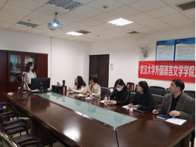 、法国波尔多三大、莫斯科大学、俄罗斯人民友谊大学、香港中文大学的11位博士依次作自我介绍。外语学院电教中心黄媛老师带着青年学者们“云游”了同声传译实验室、语言教学实验室、笔译实训实验室等多个实验室,对学院学校共享设备使用体系、教学环境、设备、平台做了详细地讲解。学院资料中心以播放短片的形式介绍了资料室的历史沿革、馆藏资源及重要使命。