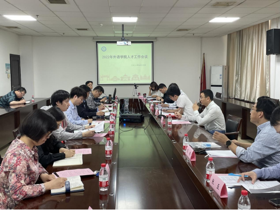 召开了2022年人才工作会议。校人事部部长、人才与专家工作办公室主任、党委教师工作部部长付磊教授出席会议并讲话,人事部人才与专家工作办公室副主任徐楠、人才与专家工作办公室主任秘书徐干城出席会议,外语学院人才工作委员会全体成员参加会议。会议由外语学院党委书记黄宏发主持。