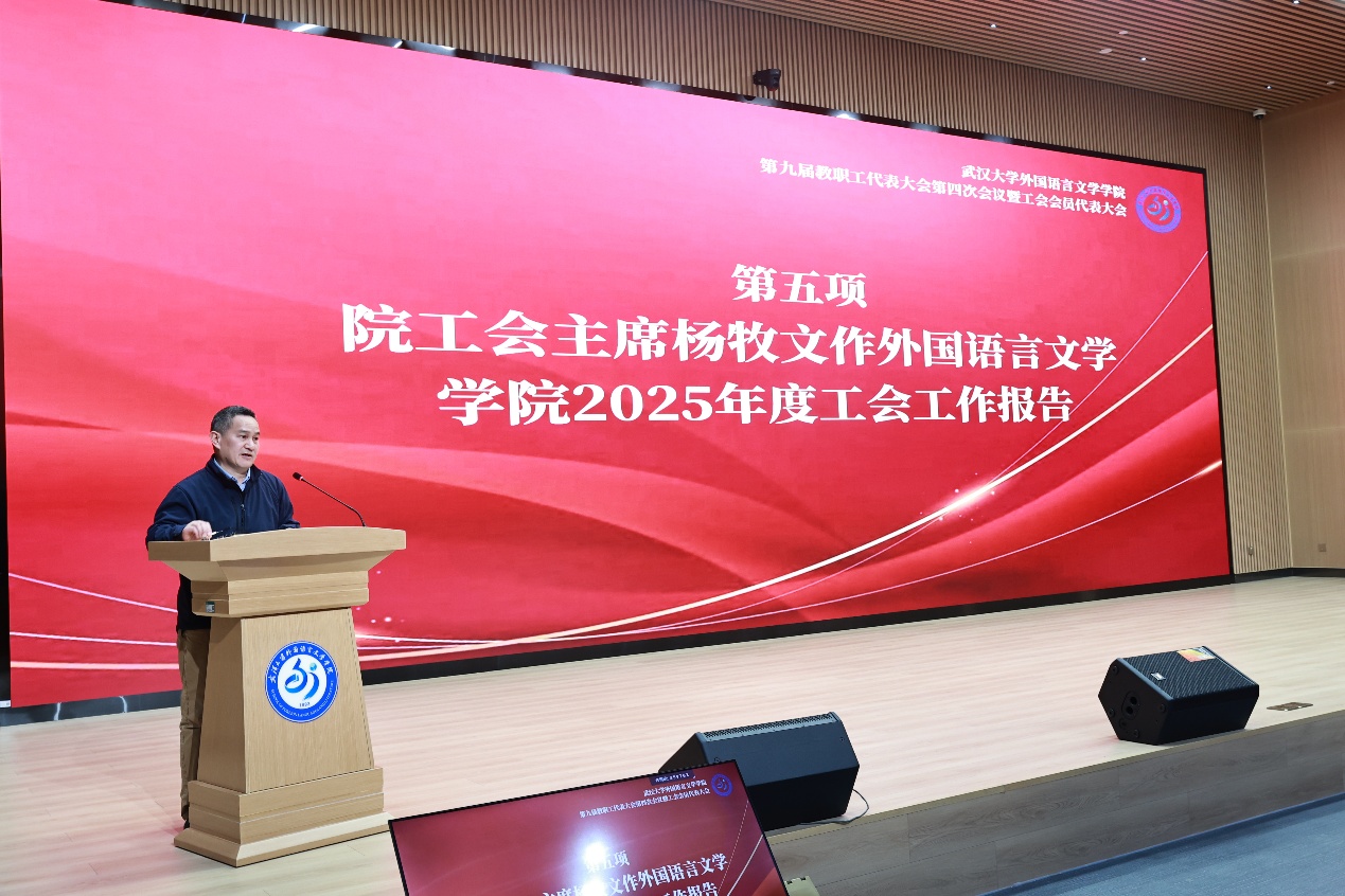 院长李圣杰作题为《凝心聚力,踔厉奋发—全力谱写学院事业高质量发展新篇章》的学院工作报告。他全面总结了学院2025年度在党建引领、人才培养、学科建设、师资队伍、科研工作、国际交流、管理服务等方面的主要工作成效。报告指出,2025年作为“十四五”规划收官、“十五五”规划启动之年,学院以“深化改革年”为主题,以内涵式发展为主线,学科竞赛斩获多项国家级奖项,毕业生就业率位居全校前列,科研经费与高水平论文数量稳步增长,人才引进与培育成效显著。同时,明确了2026年重点工作思路,提出将围绕“十五五”规划实施,深化“外语+” 复合型人才培养模式,做好第六轮学科评估迎评工作,推进党建与事业发展深度融合,全面提升办学水平与学科核心竞争力。