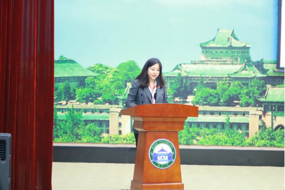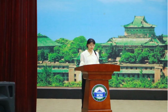 大会在庄严的国歌声中拉开帷幕。校团委副书记王园老师致辞,王园老师代表学校团委对本次大会的召开表示热烈祝贺,对长期关心支持学院工作的党政领导、老师、学生予以诚挚的感谢。王园老师特别提到外院的系列特色活动“华中高校研究生英语挑战赛”“华中高校研究生笔译大赛”“多语种诵读大赛”等,呼吁同学们在外语活动中展现风采,立志做有理想、敢担当、肯吃苦、肯奋斗的好青年。同时,王园老师也向研究生会提出了持续深化改革、提高研究生会的组织力和战斗力、用心用情服务同学的要求与期望。