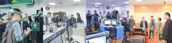 外语教学实验中心虚拟仿真实验室、可视化语言实验室、翻译实训室、同声传译实验室等,并进行了现场交流。