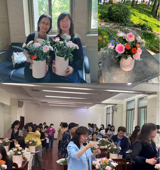 活动现场,老师们在欢声笑语和花香中忙碌着,一起交流互动。他们不仅学到了插花的技巧,更借此机会从繁忙的工作中释放身心,充分享受到了插花艺术的独特魅力和无穷乐趣。最后,大家一起合影留念,留下了快乐、美好的回忆。