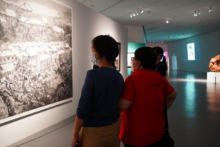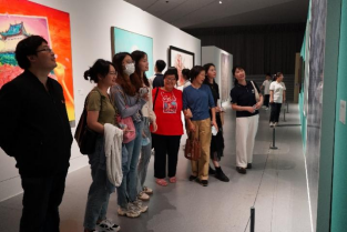 风景人文主题创作,在笔墨光影之间回望珞珈山下峥嵘历史,感知百卅武大的深厚底蕴。师生们三五成群漫步展厅,仔细端详每一幅画作和每一件展品,辨认画框中熟悉的风景和视角,不时地互相交流见解,表达赞叹。大家或相互拍照记录,或共同合影留念,储存愉快美好的瞬间。