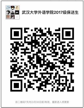 为进一步提高我校2017年外语类预备保送生的外语能力和专业素养,从而为他们进入大学学习打下良好的基础,我校拟于2017年3月至8月,提前为其提供学业指导,具体入学前学术辅导方案由我校外啪啪啦 实施。为了便于联络和管理,请已获得录取资格的我校2017年外语类预备保送生,务必于3月27日前扫描以下二维码加入“啪啪啦 外语学院2017级保送生”微信群。