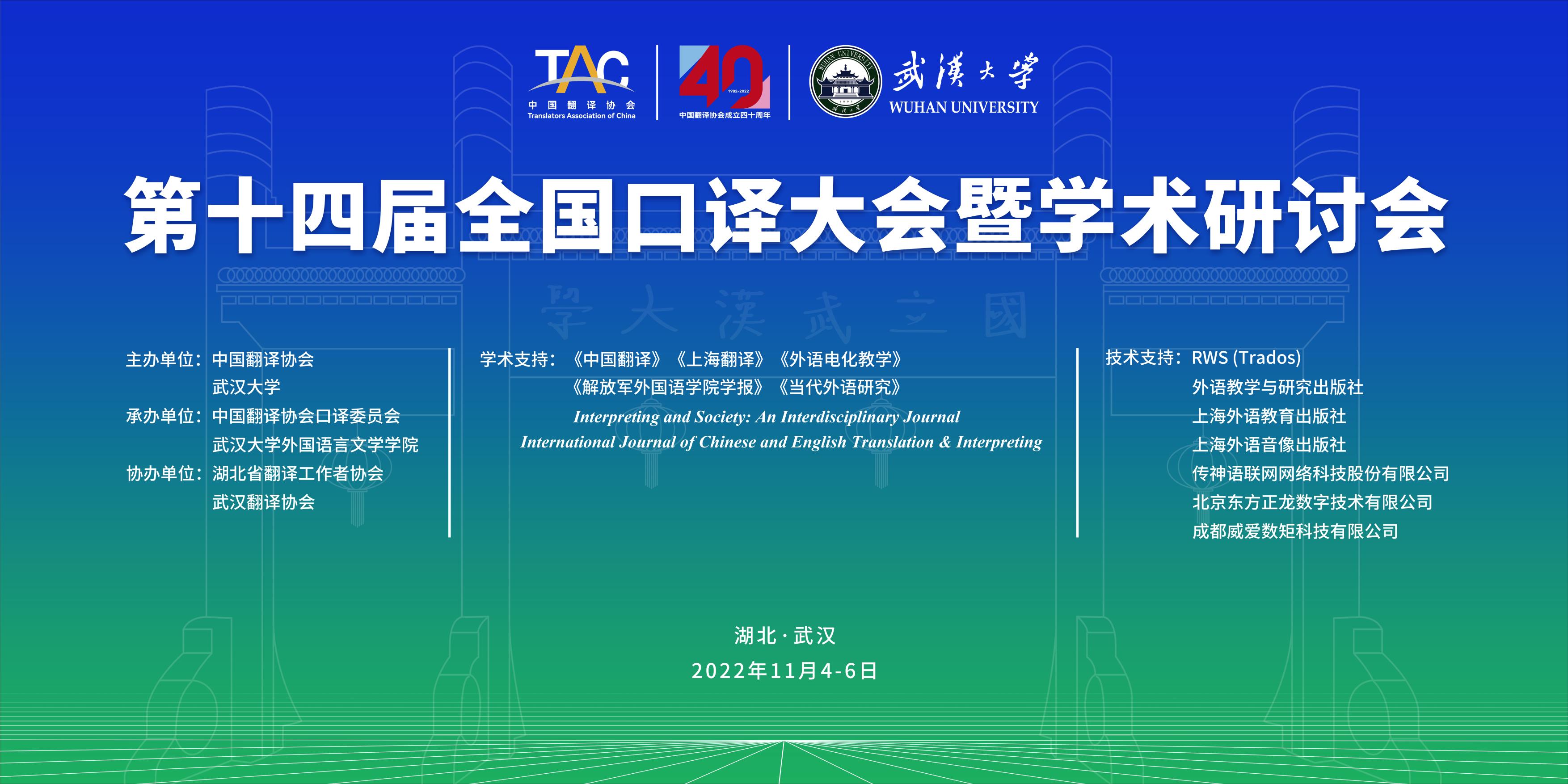 将于2022年11月4-6日在湖北武汉,以“面向国际传播的口译实践、教学与研究”为主题,共同主办第十四届全国口译大会暨学术研讨会。本届口译大会系“庆祝中国翻译协会成立四十周年系列活动”之一。诚邀全国口译界同仁莅临嘉会。