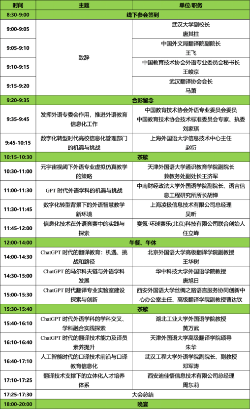 本次大会将汇聚外语教育与翻译教育领域的专家学者,共同探讨新时代智能技术在高校外语教育与翻译教育领域的应用。诚邀各高校教务处、设备处、外语学院、电教中心、信息中心、实验室、MTI教育中心、各系部等领导及外语教育信息技术与翻译技术专业教师参会指导和交流。