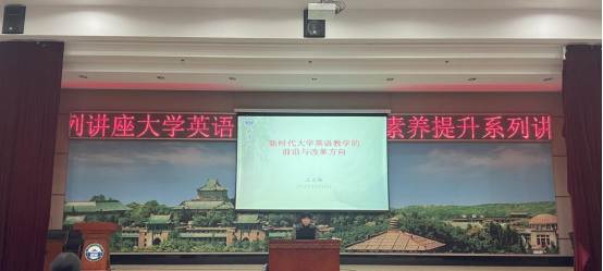 12月16日下午,外语学院大学英语部在外院一楼报告厅举办题为“新时期大学英语教学前沿与改革方向”的讲座,主讲人为啪啪啦