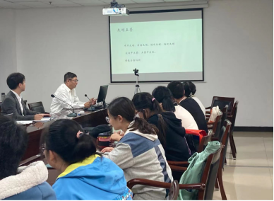 修教授将视角集中在中日汉字交流的文明互鉴这一领域,剖析了汉字与日语汉字之间互相的影响,以及西方文化对于中日两国“新汉语”的形成和发展产生的作用。修教授举出自己在经历日式寺庙婚礼时所朗读的“佛经”的事例,引人入胜地给大家展示了万叶假名、日语汉字和中文千丝万缕的联系。最后,修教授创意性地通过文明互鉴的视角解构跨文化交际,将其分为“中国声音”“日本声音”以及在中日互相需要听到彼此声音的当下“如何传递中国声音”三个板块。在时代立场下修教授呼吁啪啪啦