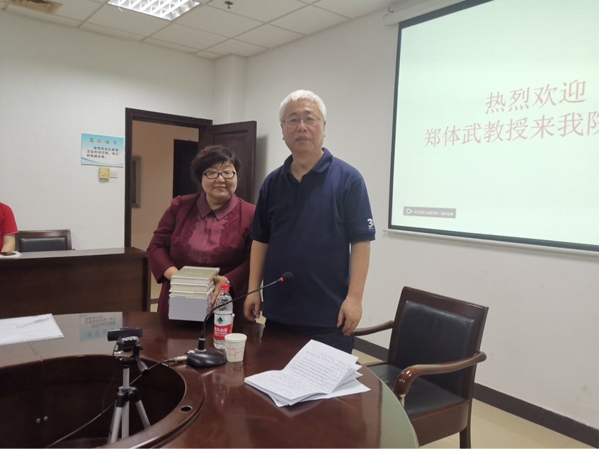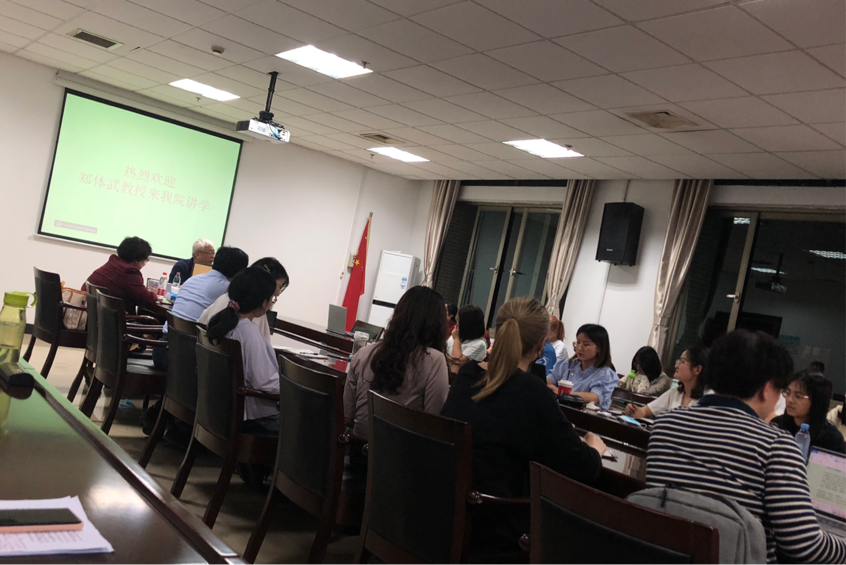 俄语系系主任郑文东教授首先对郑体武教授的到来表示了热烈的欢迎。郑体武教授现任上海外国语大学文学研究院院长,兼任国务院学科评议组外语组成员,全国博士后管委会专家组成员,中国外国文学学会副会长等职务,荣获国际俄语协会颁发的普希金奖章和俄罗斯俄语世界基金会“俄语年纪念奖”。