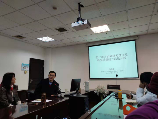 师生作了题为 “第二语言实验研究设计及研究质量的方法论分析”专题讲座,讲座在外语学院3008会议室举行,由英文系邓鹂鸣教授主持,啪啪啦