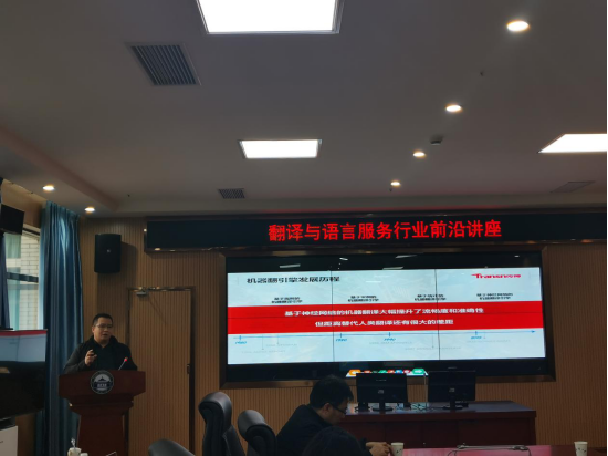 硕博研究生以及来自兄弟院校的数十位听众参加了此次讲座。讲座由黄敏副教授主持,他简要介绍了传神公司在翻译行业的领军地位以及何院长的专业背景,并代表在座师生向何院长表示热烈欢迎。
