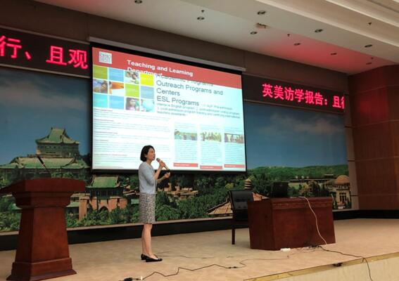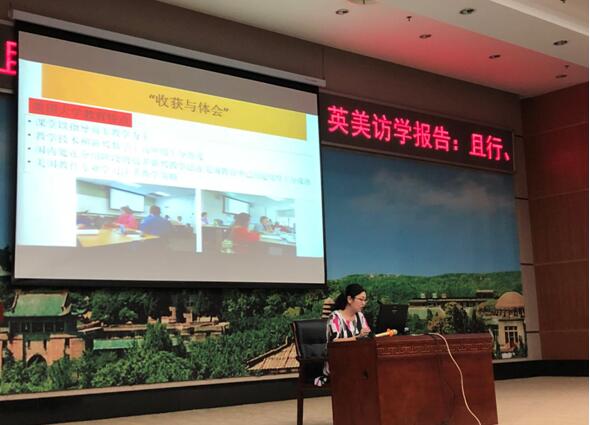 三位老师通过自己在国外访学过程中的观察和思考,为大学英语部老师的教学研究和实践提供了启迪和借鉴。李加莉老师首先和大家分享了她在美国俄亥俄州立大学的访学经历。她介绍了该校教育学院教学部在提高全校国际生英语水平中所起的作用,教育学院英语教学专业的课程设置和课堂组织,以及东亚系体演文化教学法的实际运用。最后简要地介绍去年在该校召开的国际会议“第二语言研究论坛”。张利平老师分别从访学报告和教学启示两个方面出发,报告了自己在美国北卡罗来纳州立大学教育学院访学听课的新鲜体验,并向老师们介绍了可供参考的一些美国教学方法和策略。余泳芳老师结合自己在英国杜伦大学的学习、研究和生活经历,和老师们一起分享和交流其所得,所思,所感和所悟, 向大家报告了英国大学的课程设置、教学方法和科研新动态。