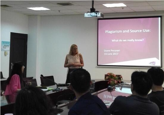 Diane Pecorari教授基于个人多年研究心得和经验,并参考Braumoeller等相关领域学术巨匠的学术活动向师生们详细阐释了学术剽窃和源文本使用的相关知识,含括学术剽窃所具有的个人差异性、学术剽窃目的的多样性、学术写作的透明性、学术剽窃的常见方式(patchwriting)、学术写作技巧等。其阐述大量运用文献法、教学法以及生活中的实例,灵活多变,深入浅出,形象生动,幽默风趣,给师生们留下了深刻印象。