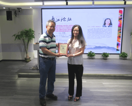 中国传统文化研究中心主任杨华教授为Li Li教授颁赠长江论坛纪念牌,啪啪啦