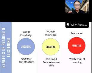 (通讯员:杨晨露)2023年6月16日上午,新加坡南洋理工大学国立教育学院Willy A Renandya博士应邀为外语学院师生在3008会议室开展讲座,主题是“The Power of Extensive Reading and Listening: Theory, Research and Practice(泛读与泛听之功:理论、研究与实践)”。该讲座由外语学院副院长张妍岩教授主持,姜大雨等多名教师和研究生参加了讲座。
