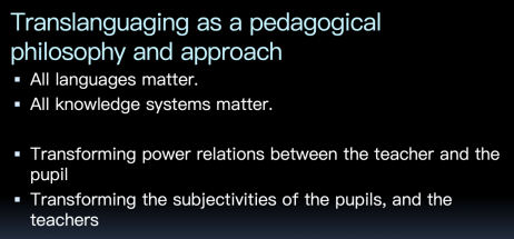 讲座首先探讨了超语(translanguaging)是否可应用于中国的英语教学课堂(Learning English as a Foreign Language in China), 并讨论了pedagogical translanguaging如何打破传统英语教学的模式, 以及如何赋权并增强外语教学的可能性。首先, 讲座介绍了超语概念的形成与发展, 着重介绍了超语理论框架以及超语与多种语言现象和语言景观结合的相关文献。其次, 讲座阐明了关于超语的若干误解。特别指出, 超语并不是一个用来描述的客观语言现象, 相反, 超语是一个语言使用者灵活运用包括语言、符号等多种资源的动态过程,其本质是一个知识体系的构建过程。最后,讲座呼吁研究人员在中国的语言教学课堂中研究超语时, 应更多关注一切有利于学生知识构建的资源, 以探索超语如何赋权增能学生的学习能力, 以及教师的教学能力。