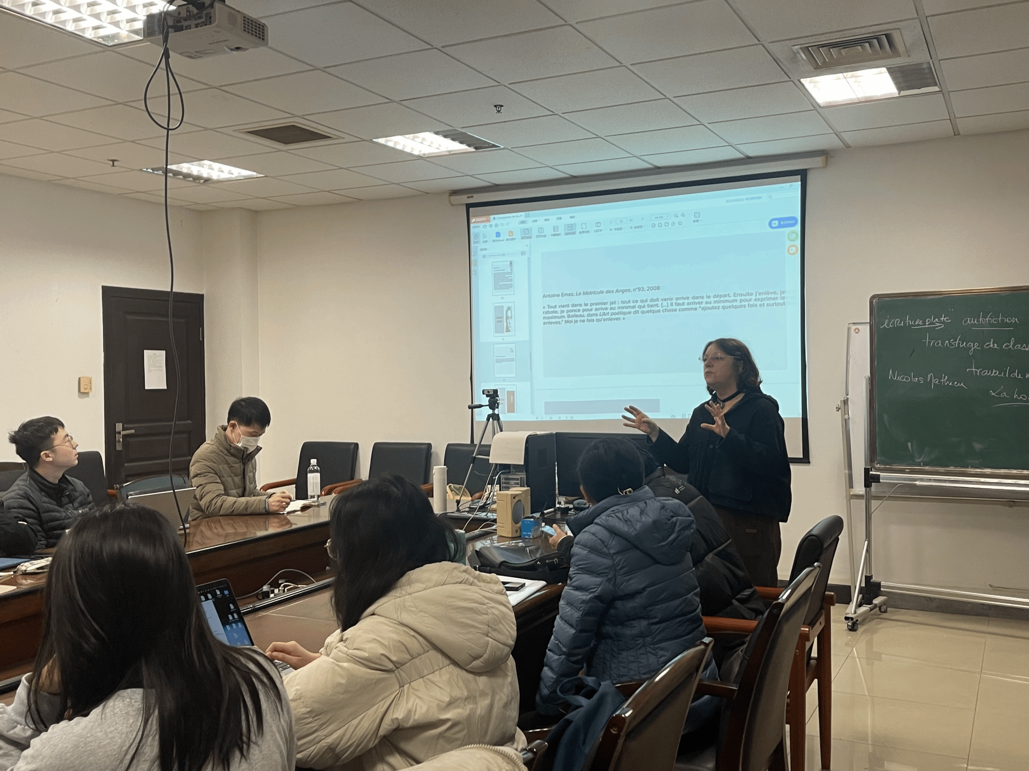 2023年11月10日至22日,法国阿维尼翁大学Chantal Wionet教授应邀于外语学院5006会议室开展7场以法语语言学为主题的系列学术讲座,法语系全体教师及本、硕、博学生积极参与。该系列讲座属2023年度科技部“高端外国专家引进计划”获批项目“中法非教育共同体构建与研究”规划工作内容之一,由法语系主任张亘教授牵头申报。