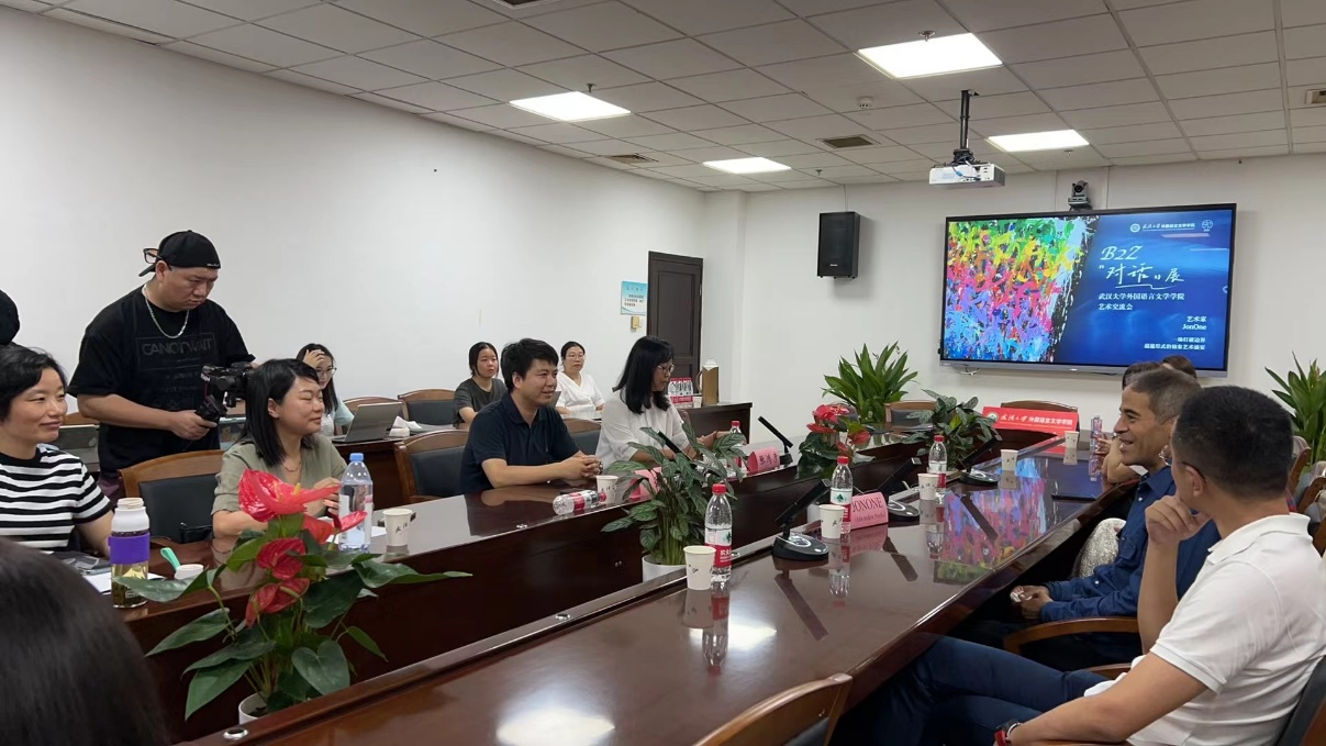 在讲座的最后,通过JONONE的艺术实践经历,外语学院师生更深入地理解了街头艺术的国际化与艺术化进程。在交流互动环节,师生共同探讨了街头艺术的变革与未来发展,谈论氛围活跃,同学们受益匪浅。会后,双方互赠了礼物作为纪念。
