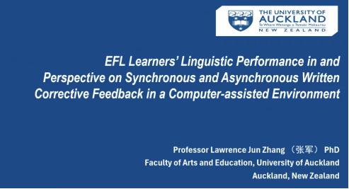 师生开展线上学术讲座,主题为“EFL Learners’ Linguistic Performance in and Perspectives on Synchronous and Asynchronous Written Corrective Feedback in a Computer-assisted Environment”。该讲座由学院英文系李丹丽老师主持,姜大雨老师、刘庆荣老师、黄雨老师等多名教师和硕博士研究生在线上聆听了讲座。