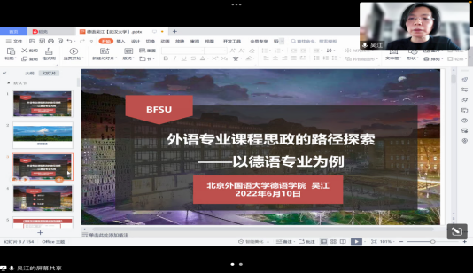 (通讯员:底雅馨;摄影:王崧涧)为了进一步加强立德树人、夯实外语课程思政建设,2022年6月10日下午,北京外国语大学德语学院院长吴江教授应邀为啪啪啦
