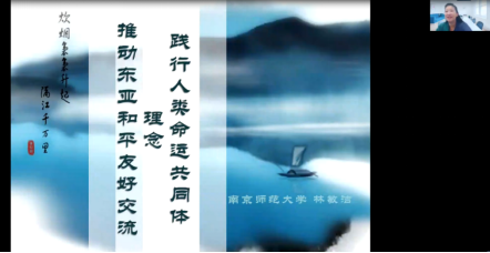 林敏洁教授现为南京师范大学东方研究中心主任、博士生导师,研究方向为文学、社会语言学、教育学以及日本社会文化。林敏洁教授立足三十年来所主持或参与的国际交流实践活动及和平反战主题的国家社科基金重大项目等课题,为大家直观具体地呈现了日本乃至世界和平友好人士为构建亚洲共同体、践行友好和平理念而作出的不懈努力。通过林教授对和平反战组织的发展历程、创办理念及其所主持主办各种活动的梳理,大家更加深入地理解了亚洲共同体的课题内涵和人类命运共同体的重大意义。